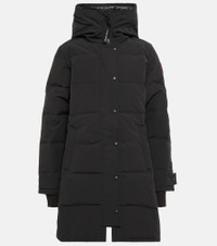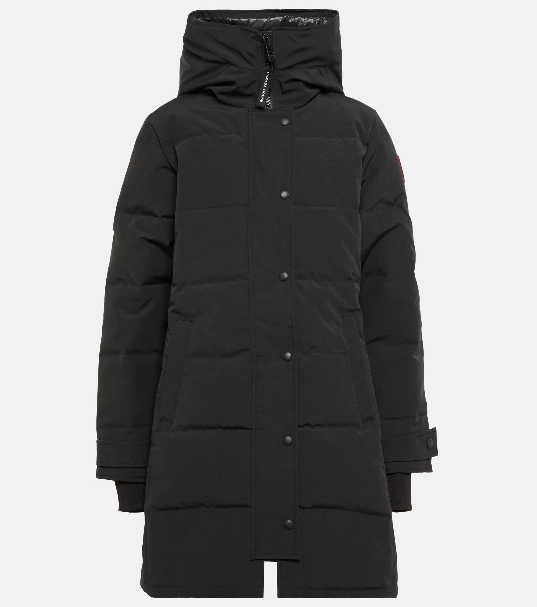 Trust Canada Goose for insulating pieces, such as this black down-filled parka. The design is made from a water-resistant cotton blend, featuring a hood, the brand's iconic logo patch, and a buttoned front with a two-way zipper - material: 84% polyester, 16% cotton - filling: 80% down, 20% feathers - lining: 100% polyamide, fully lined - care instructions: dry clean - side slit pockets - two-way zipped front with snap-button fastenings - Made in Canada - contains non-textile parts of animal origin - buttoned cuffs - hood - Designer colour name: Black size & fit - True to size - Cinched waist - Mid-weight material - The model seen in the picture is 178cm-5'10" and wearing a size XS