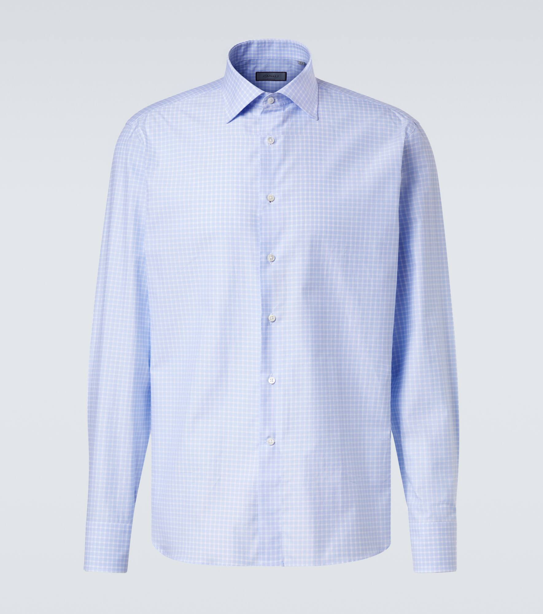 The epitome of sartorial expertise, Canali’s Italian-made collections combine the best of materials with refined lines, muted color palettes, and pristine detailing. This shirt is crafted from cotton poplin and showcases an elegant checked pattern. Product Details - Material: 100% cotton - Care instructions: machine wash at 30 degrees - Made in Italy - Designer color name: 401 - Item color: blue - Dress shirt - Collar: spread - Item number: P01057111 Size & Fit - True to size - Without pleats in the back - Regular fit - Non-stretchy fabric - Falls below the hip - Height of model is 189cm-74.5" and wears a size EU 41