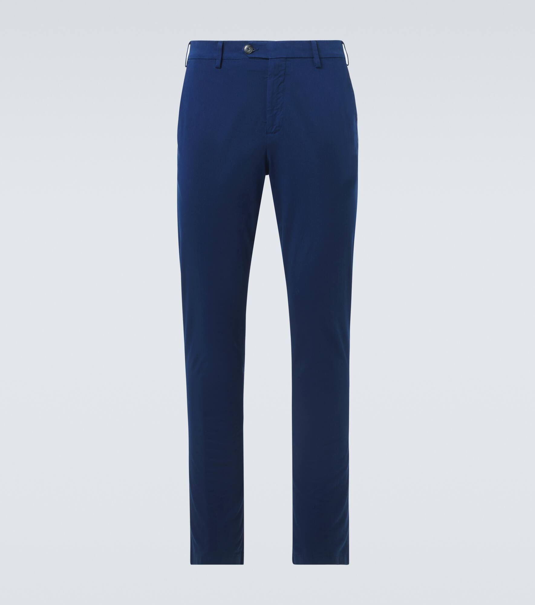 Product Details - Material: 98% cotton, 2% elastane - Care instructions: machine wash at 30 degrees - Made in Italy - Designer color name: 301 Navy - Item color: navy - Closure: zip and button fastening - Pockets: side slit pockets, back pockets - Item number: P01001081 Size & Fit - Fits small to size - we recommend trying one size larger - Non-stretchy fabric - Straight leg - The model in the picture is 185cm-6'1" and wearing a size 52