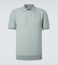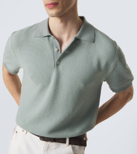 BRIANZA GREEN MICROSTRUCTURED COTTON POLO SHIRT WITH PLAIN-KNIT COLLAR