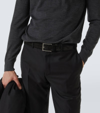 Add timeless refinement to your ensembles with this belt from Canali. Meticulously made from soft suede, this versatile piece is complete with a silver-toned rectangular buckle for a polished finish. Product Details - Care instructions: do not wash - Made in Italy - Designer color name: 110 - Item color: black - Hardware color: silver - Includes: dust bag - Item number: P01057145 Size & Fit - Width 3.5cm-1.5" - Buckle width 4.5cm-2" - Length of size 90 = 85,5/95.5cm-33.5/376"