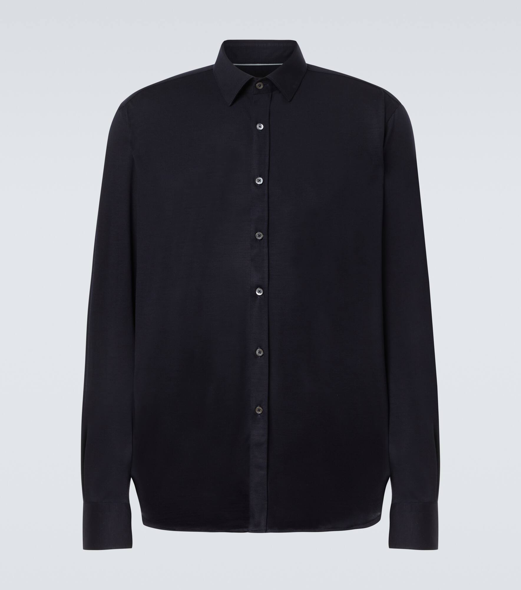 Keep stylish and comfortable in this shirt from Canali. The design is crafted in Italy from wool and boasts a slim silhouette. Product Details - Material: 100% wool - Care instructions: machine wash at 30 degrees - Made in Italy - Designer color name: 301 - Item color: blue - Closure: buttoned front - Collar: classic (Straight point) - Item number: P01057163 Size & Fit - True to size - Without pleats in the back - Classic fit - Stretchy fabric - Falls below the hip - Height of model is 188cm-74" and wears a size L