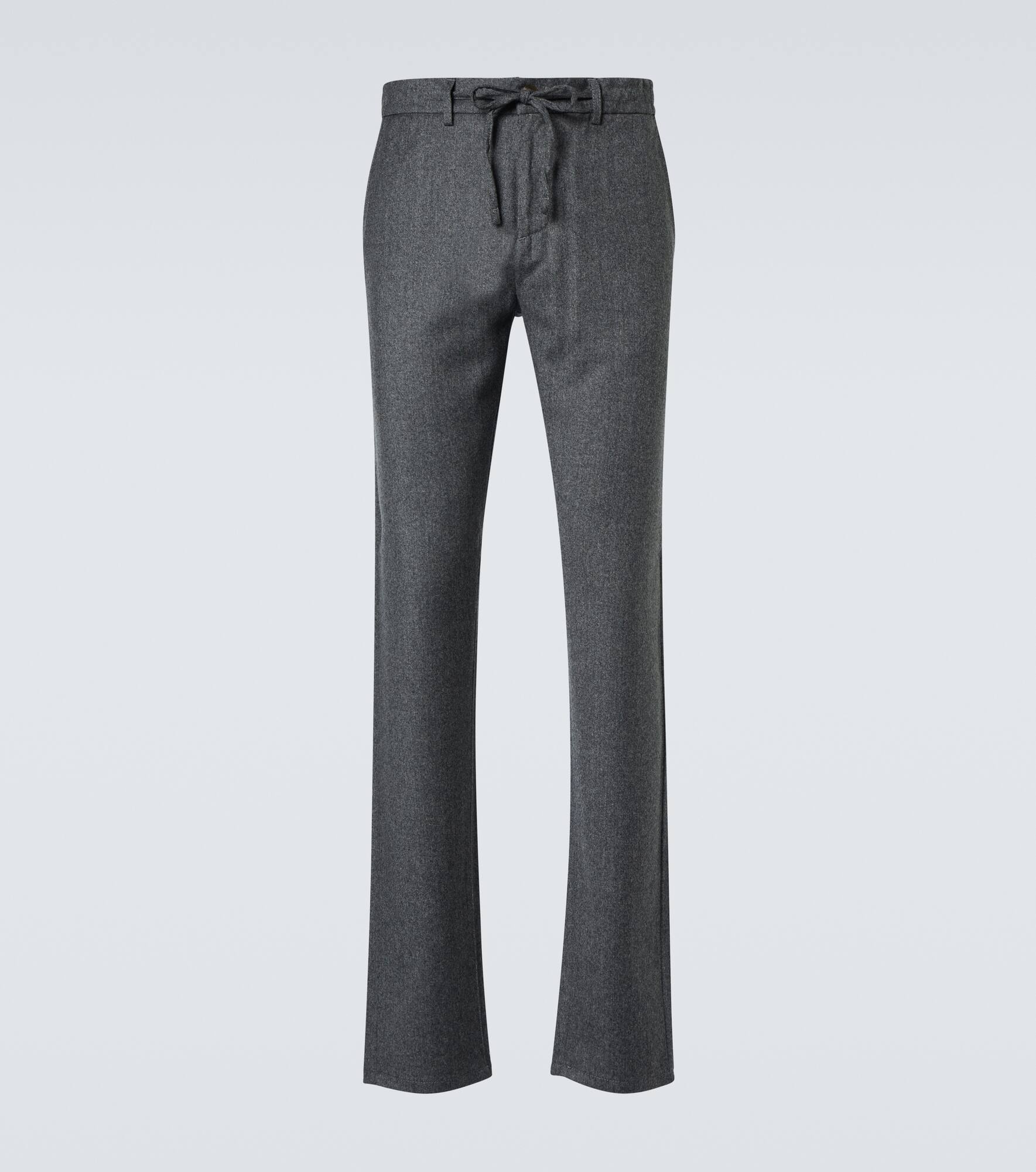 Product Details - Material: 100% wool - Care instructions: machine wash at 30 degrees - Made in Italy - Designer color name: Grey - Closure: zipper fly, button fastening, drawstring - Pockets: side slit pockets, back pockets - Belt loops - Item number: P00945134 Size & Fit - True to size - Elasticated waist - Adjustable at the waist - Non-stretchy fabric - Straight leg - The model in the picture is 185cm-6'1" and wearing a size 48