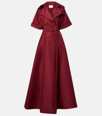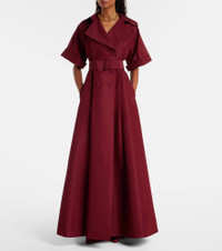 A red-carpet favorite, this Carolina Herrera silk gown reimagines the classic trench coat. Featuring a double-breasted bodice and belted waist, the voluminous skirt adds drama to this timelessly elegant silhouette. Product Details - Material: 100% silk - Care instructions: dry clean - Made in Italy - Designer color name: Garnet - Item color: burgundy - Lining: 100% polyester - Notched lapel - Closure: double-breasted (six buttons) - Detachable belt - Pockets: side slit pockets - Fully lined - Item number: P01091878 Size & Fit - True to size - Cinched waist - Non-stretchy fabric - The model seen in the picture is 178cm-5'10" and wearing a size US 4