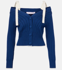 Crowned the best-dressed woman of all time, Carolina Herrera's namesake brand has a fashion prowess that reigns supreme. This elegant cardigan is ribbed-knit from cotton and wool with bow-detail ribbon shoulder straps for a flirtatious twist. Product Details - Material: 70% cotton, 30% wool - Care instructions: dry clean - Made in China - Designer color name: Bright Navy - Item color: blue - Closure: buttoned front - Item number: P01044769 Size & Fit - True to size - Cinched waist - Partly stretchy fabric - Cropped - The model seen in the picture is 178cm-5'10" and wearing a size XS