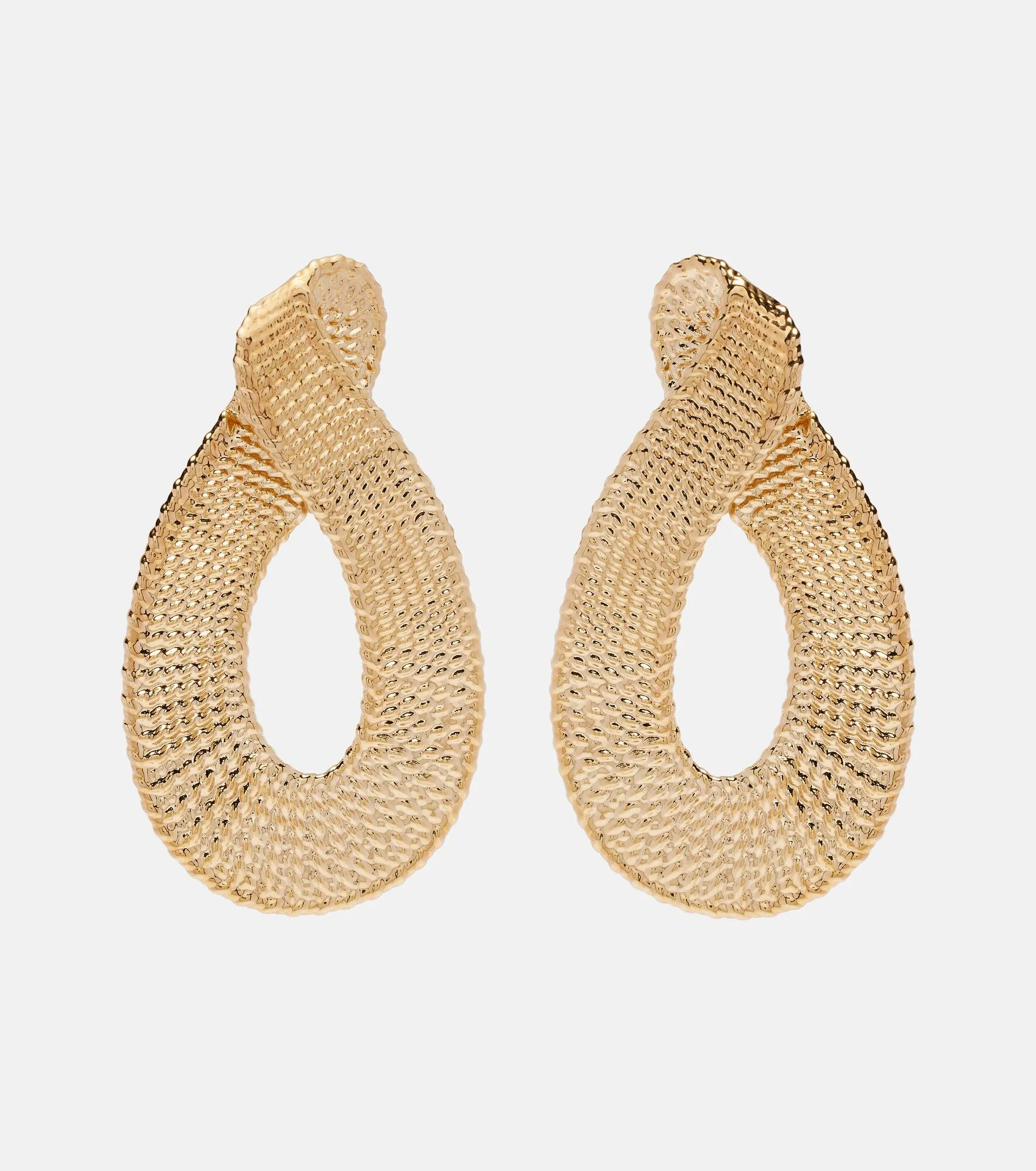 Crowned the best-dressed woman of all time, Carolina Herrera's namesake brand has a fashion prowess that reigns supreme. Inspired by classical Greek motifs, these clip-on earrings are defined by their geometric, scroll-like silhouette. Product Details - Material: brass - Made in Italy - Includes: box, dust bag - Color: gold - Closure: clip-on - Item number: P01136716 Size & Fit - Length 6,5cm-2.5" - Max. width 3,5cm-1.5"