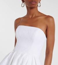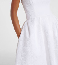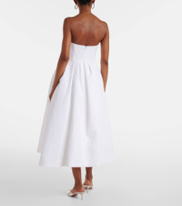 Crowned the best-dressed woman of all time, Carolina Herrera's namesake brand has a fashion prowess that reigns supreme. This midi dress is made from a cotton-blend to a strapless silhouette. Product Details - Material: 95% cotton, 5% viscose - Care instructions: dry clean - Made in the USA - Designer color name: White - Item color: white - Material II: 100% polyester - Lining: 100% polyester - Boning - Closure: zipped back - Item number: P01051541 Size & Fit - Fits large to size - we recommend trying one size smaller - Strapless - Internal boned corset for support - Cinched waist - Non-stretchy fabric - The model seen in the picture is 178cm-5'10" and wearing a size US 2