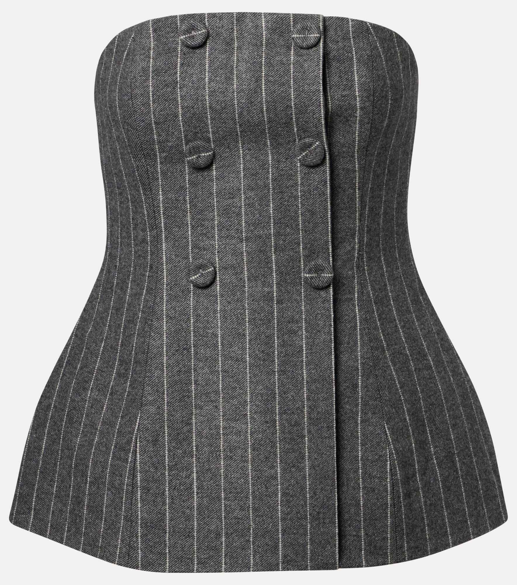 Strapless Double-Breasted Pinstripe Top