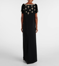A permanent fixture on the red carpet, Carolina Herrera is credited with the most elegant eveningwear. This gown is tailored to a streamlined silhouette with dazzling embellishments adorning the boat neckline and short-sleeved bodice. Product Details - Material: 92% polyester, 8% polyurethane - Care instructions: dry clean - Made in India - Color: black - Designer color name: Black Multi - Item color: black - Lining: 100% polyester - Closure: concealed zipped back - Long vent - Item number: P01103759 Size & Fit - Fits large to size - we recommend trying one size smaller - Straight fit - Non-stretchy fabric - The model seen in the picture is 178cm-5'10" and wearing a size US 2