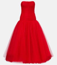 A permanent fixture on the red carpet, Carolina Herrera is credited with the most elegant eveningwear. Made from 20 layers of striking red tulle, this gown features crystal embellishments across its fitted bodice, a dropped waistline, and beautifully flared skirt. Product Details - Material: 100% nylon - Care instructions: dry clean - Made in the USA - Designer color name: Herrera Red - Item color: red - Closure: zipped back - Item number: P01023159 Size & Fit - True to size - Low back - Strapless - Internal corset with underwire support - Relaxed fit from the hip down - Non-stretchy fabric - The model seen in the picture is 178cm-5'10" and wearing a size US 4