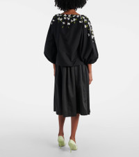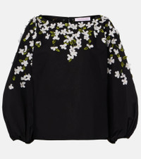 Crowned the best-dressed woman of all time, Carolina Herrera's namesake brand has a fashion prowess that reigns supreme. This top is crafted from a cotton-blend and detailed with gathered billow sleeves and delicately embellished floral-appliques and embroidery. Product Details - Material: 97% cotton, 3% polyurethane - Care instructions: dry clean - Made in India - Designer color name: Black - Item color: black - Closure: hook-fastening back - Cuff: elasticated - Item number: P01051563 Size & Fit - True to size - Loose fit, elasticated waist - Non-stretchy fabric - Falls to the hip - The model seen in the picture is 178cm-5'10" and wearing a size US 4