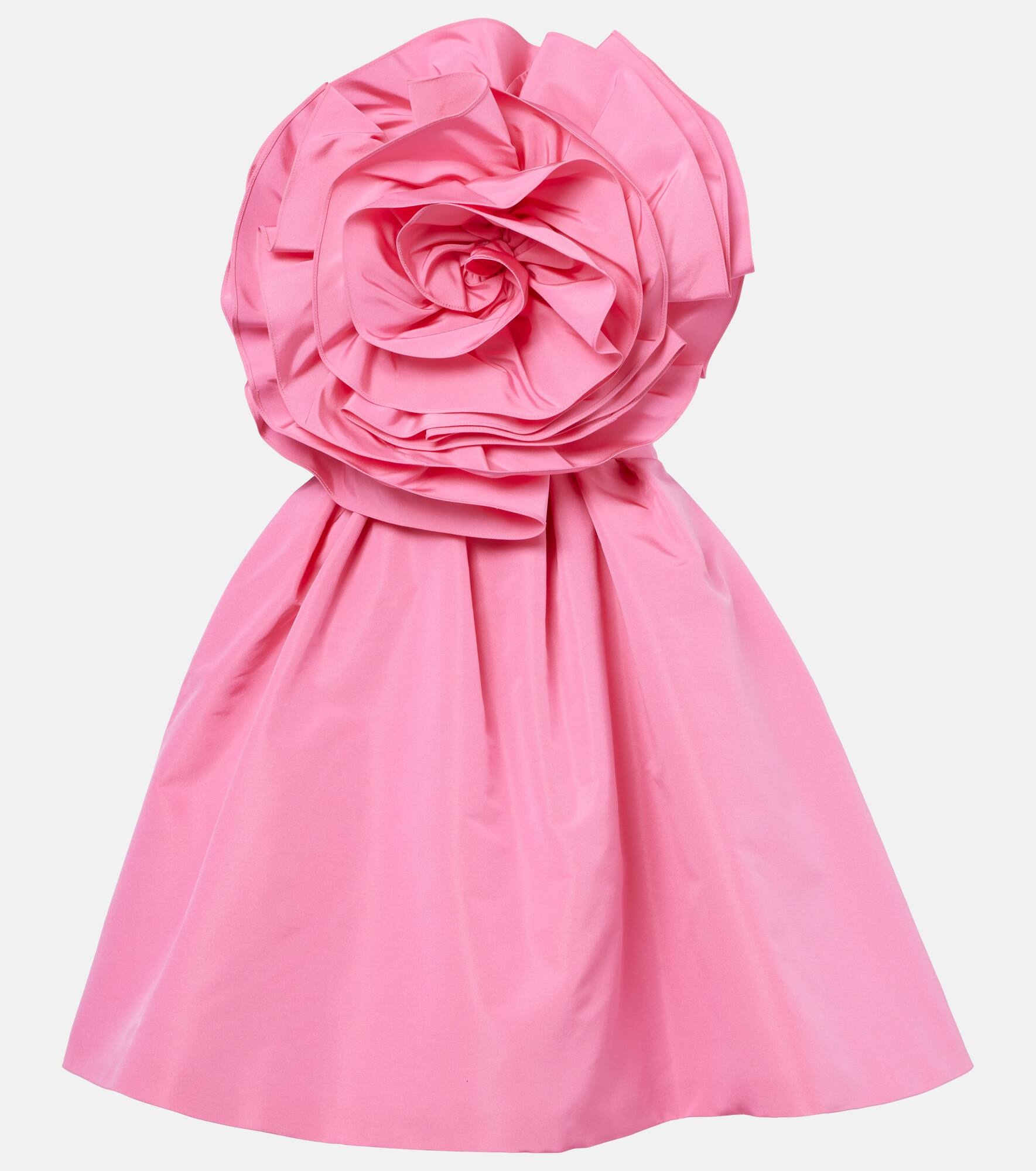 Strapless appliquéd silk-faille mini dress Bright pink