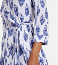 Crowned the best-dressed woman of all time, Carolina Herrera's namesake brand has a fashion prowess that reigns supreme. Complete with a matching self-tie belt, this shirt dress is made from cotton-blend material and features an all-over floral print. Product Details - Material: 97% cotton, 3% elastane - Care instructions: dry clean - Made in Italy - Designer color name: White Multi - Item color: white, blue - Detachable belt - Sleeves: ¾ length - Cuff: buttoned - Collar: classic (Straight point) - Closure: buttoned front - Lining: 100% cotton - Item number: P01044774 Size & Fit - True to size - Loose fit, comes with belt - Non-stretchy fabric - The model seen in the picture is 178cm-5'10" and wearing a size US 4