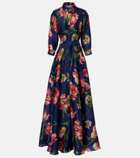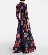 A permanent fixture on the red carpet, Carolina Herrera is credited with the most elegant eveningwear. This floor-length gown features a grandiose floral print on lustrous gazar construction and cinches at the waist with the matching sash belt. Product Details - Material: 100% polyester - Care instructions: dry clean - Made in the USA - Designer color name: Dark Navy Multi - Item color: blue, multicolor - Lining: 100% polyester - Collar: classic (Straight point) - Closure: buttoned front - Pockets: side slit pockets - Detachable belt - Fully lined - Item number: P01091886 Size & Fit - True to size - Cinched waist - Non-stretchy fabric - The model seen in the picture is 178cm-5'10" and wearing a size US 4