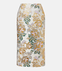 Crowned the best-dressed woman of all time, Carolina Herrera's namesake brand has a fashion prowess that reigns supreme. This lavish midi skirt is cut from luxurious jacquard, intricately woven with silver, green, and golden threads in a vintage-inspired floral pattern. Product Details - Material: 77% polyester, 12% metallic fibres, 11% polyamide - Care instructions: dry clean - Made in Italy - Designer color name: Ivory Multi - Item color: multicolor - Lining: 100% polyester - Closure: zipped back - Short vent - Fully lined - Item number: P01091882 Size & Fit - True to size - Non-stretchy fabric - slit length 33cm-13" - The model seen in the picture is 178cm-5'10" and wearing a size US 4