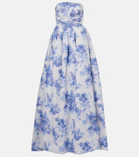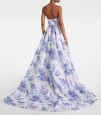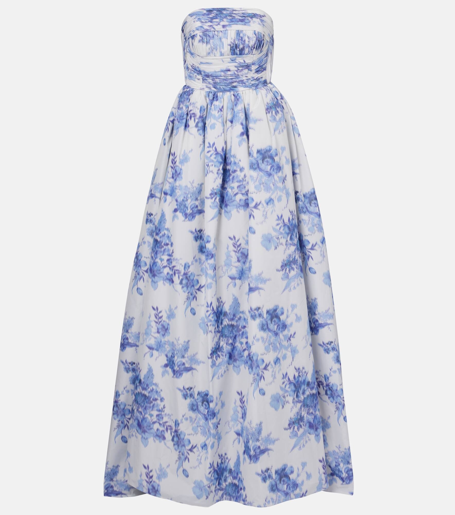 Crowned the best-dressed woman of all time, Carolina Herrera's namesake brand has a fashion prowess that reigns supreme. Decorated with romantic florals inspired by vintage porcelain, this gown is crafted from taffeta with a gathered bustier bodice and voluminous, pleated skirt. Product Details - Material: 100% polyester - Care instructions: dry clean - Made in the USA - Designer color name: Ivory/Blue - Item color: blue, ivory - Built-in bustier - Fully lined - Lining: 100% polyester - Item number: P01044792 Size & Fit - True to size - Strapless - Internal boned corset for support - Fitted bodice, loose skirt - Non-stretchy fabric - The model seen in the picture is 178cm-5'10" and wearing a size US 4