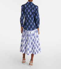The Icon shirt from Carolina Herrera features an all-over block print of elegant florals. The piece comes with elbow-length sleeves and was made in Italy from a comfortable cotton blend. Product Details - Material: 97% cotton, 3% elastane - Care instructions: dry clean - Made in Italy - Designer color name: Midnight Multi - Item color: blue - Closure: buttoned placket - Standard placket - Collar: spread - Cuff: one button - Item number: P01044780 Size & Fit - True to size - Cinched waist - Non-stretchy fabric - Falls to the hip - The model seen in the picture is 178cm-5'10" and wearing a size US 4