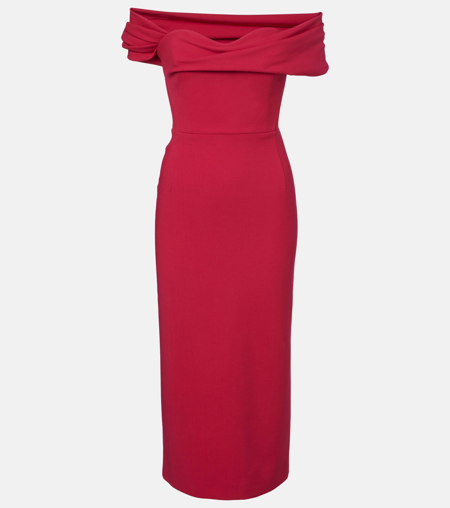 A permanent fixture on the red carpet, Carolina Herrera is credited with the most elegant eveningwear. Crafted from wool, this sculptural cocktail dress features a draped off-shoulder silhouette with a charming sweetheart neckline. Product Details - Material: 97% wool, 3% elastane - Care instructions: dry clean - Made in Italy - Designer color name: Claret - Item color: purple - Lining: 100% polyester - Boning - Closure: concealed zipped back - Short vent - Item number: P01103749 Size & Fit - True to size - Low back - Off-the-shoulder - Internal boned corset for support - Fitted - Non-stretchy fabric - The model seen in the picture is 178cm-5'10" and wearing a size US 4