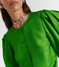 Product Details - Material: 100% silk - Care instructions: dry clean - Made in the USA - Designer color name: Grasshopper - Closure: buttoned front - Item number: P00941620 Size & Fit - True to size - Cinched waist - Non-stretchy fabric - Falls to the hip - The model seen in the picture is 178cm-5'10" and wearing a size US 4