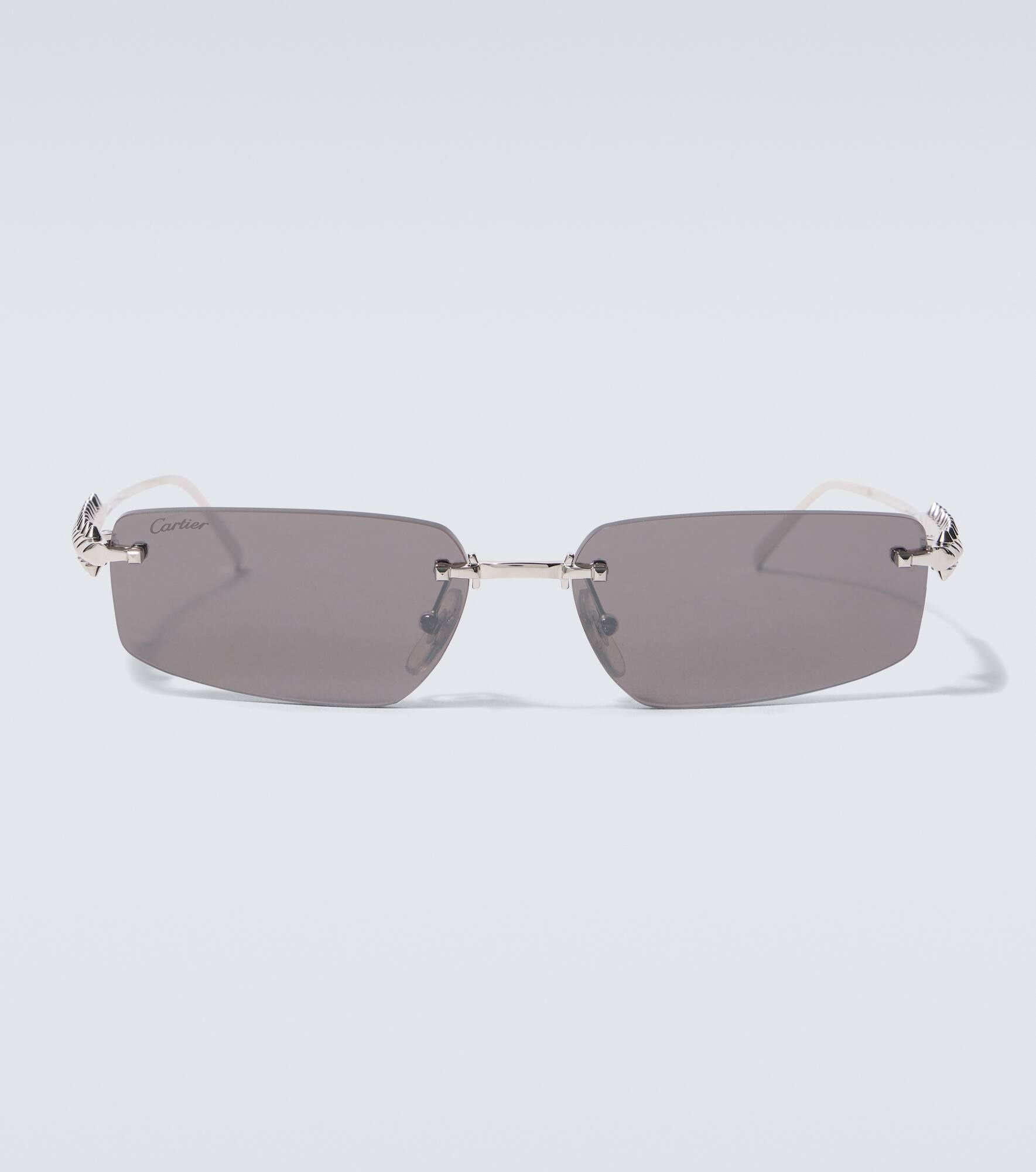 Cartier's expertise in jewelry-making extends to the Cartier Eyewear Collection, a line of exquisite styles for everyday wear. Built from silver metal frames with a spiral construction at the temples, the Clash De Cartier rectangular sunglasses keep success within view. Product Details - Frame material: metal - Frame color: silver - Lens filter category 3 - Lens color: grey - Made in France - Includes: case and presentation box, cleaning cloth - Designer color name: Silver-Silver-Silver - Item number: P01011472 Size & Fit - Lens width: 58mm-2.3" - Bridge size: 16mm-0.65" - Earpiece length: 140mm-5.5"