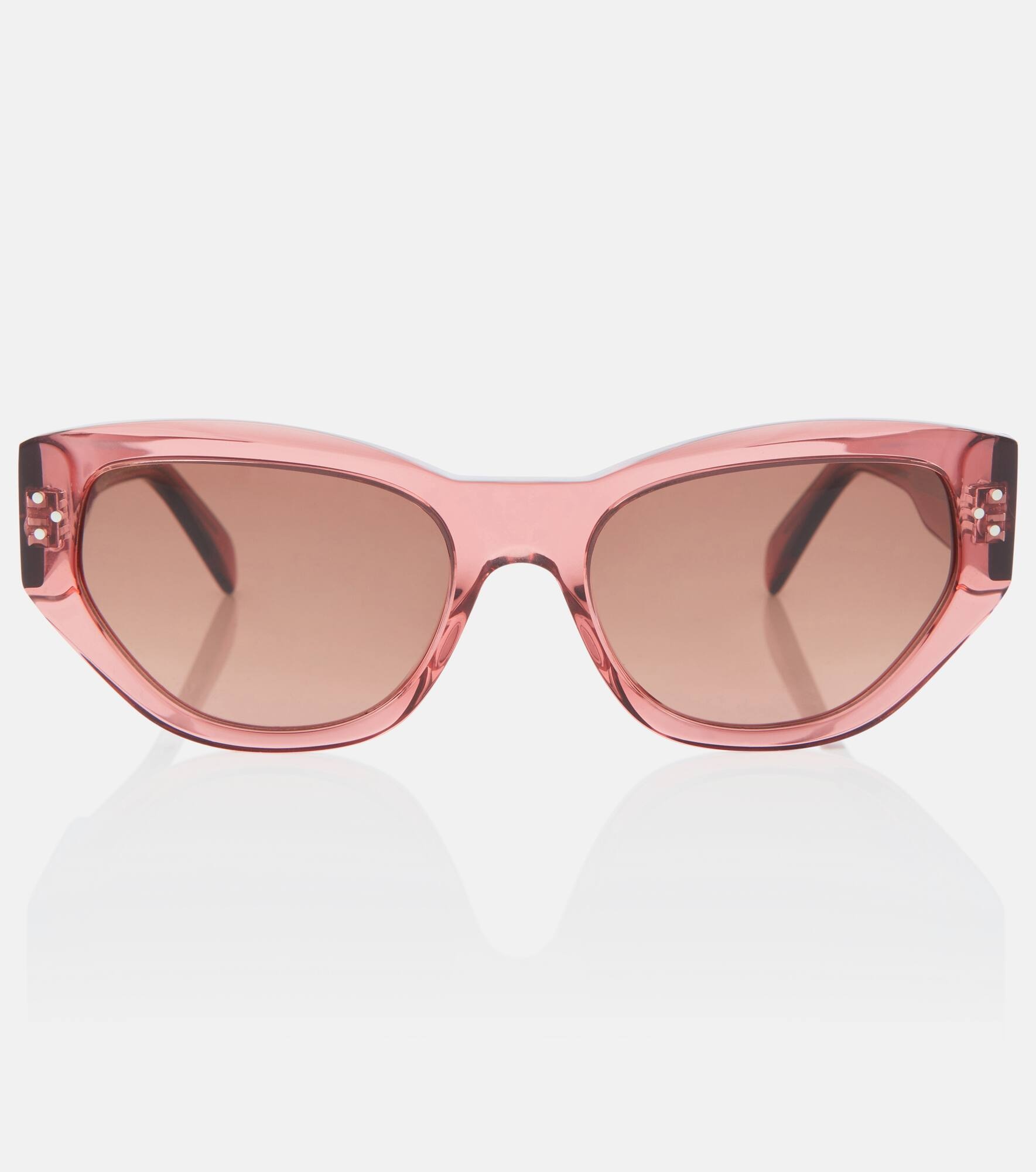 This pair of cat-eye sunglasses from Celine Eyewear will complete any outfit on a chic note. The pink acetate frames have subtle logo lettering on the temples and the lenses are tinted in tonal rose. Product Details - Frame color: bordeaux - Frame material: acetate - Lens color: bordeaux - comes with cleaning cloth - comes in a logo-embossed case - comes with a presentation box - Lens filter category 3 - Made in Italy - Item number: P00679993 Size & Fit - Lens width: 54mm-2.15" - Bridge size: 18mm-0.7" - Earpiece length: 135mm-5.3" - International fit