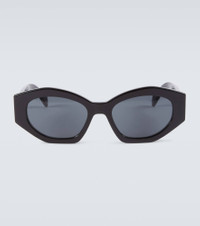 These angular oval sunglasses from Celine Eyewear experiment with the artistic tension between edges and curves. Made in Italy from black acetate, the design comes with tinted gray lenses and golden branding at the temples. Product Details - Frame color: black - Frame material: acetate - Lens color: grey - Lens type: tinted lenses - comes with cleaning cloth - The color of the case may vary, comes in a logo-embossed case - Lens filter category 3 - Made in Italy - Item number: P00771439 Size & Fit - Lens width: 55mm-2.15" - Bridge size: 19mm-0.75" - Earpiece length: 145mm-5.7"