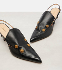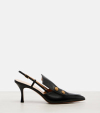 Your special occasion will be one to remember with the Agnes slingback pumps from Chloe. Made from Italian leather, the pair showcases a pointed-toe silhouette embellished with bronzed, logo-engraved plaques. Product Details - Upper: lamb leather - Lining: leather - Sole: leather insole and sole - Toe shape: pointed toe - Made in Italy - Includes: shoe box - Designer color name: Black - Item color: black - Slingback strap - Hardware color: gold - Item number: P01102183 Size & Fit - True to size - European sizes - 7cm-3" heel (size EU 38)
