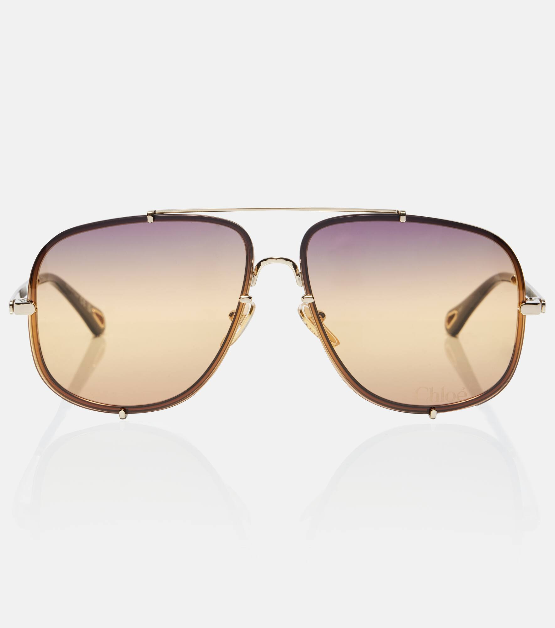 Renowned for its free-spirited aesthetic, Chloe's designs are characterized by romance with a Parisian flair. These sunglasses boast a classic aviator silhouette and an oversized fit. Product Details - Frame material: metal - Frame color: gold - Lens filter category 1 - Lens color: golden yellow - Made in Italy - Includes: case, cleaning cloth - The color of the case may vary - Item number: P01098296 Size & Fit - Lens width: 62mm-2.45" - Bridge size: 12mm-0.45" - Earpiece length: 140mm-5.5"