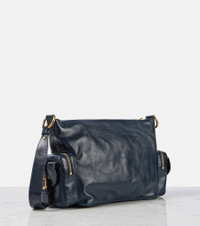Product Details - Material: leather - Lining: fabric - Made in Italy - Designer color name: Evening Blue - Top handle, Adjustable shoulder strap - Front pockets - Zipped side pocket - Internal details: internal slot pocket - Closure: zipped top - Includes: dust bag - Item number: P00956013 Size & Fit - Height 23cm-9" - Max. width 37cm-14.5" - Max. depth 14,5cm-5.5" - Min. length shoulder strap 90cm-35.5" - Max. length shoulder strap 104cm-41"