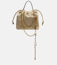 Renowned for its free-spirited aesthetic, Chloe's designs are characterized by romance with a Parisian flair. Featuring a drawstring top, the Chloe Icons bucket bag is crafted from smooth leather and finished with a golden, logo-detailed chain. Product Details - Material: lamb leather - Lining: calf leather - Made in Italy - Color: white - Designer color name: Cloudy Cream - Detachable chain shoulder strap, Top handle - Color of chain strap: gold - Internal details: card slot, single compartment - Closure: drawstring top - Includes: box, dust bag - Item number: P01105796 Size & Fit - Height 17cm-6.5" - Width 18cm-7" - Depth 9cm-3.5" - Chain length 52/102cm-20.5/40" - Length of handle 18cm-7"