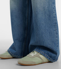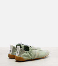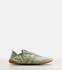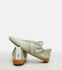 The Chloe Kick sneakers by Chloe draw inspiration from the boxing and ballet worlds, creating an innovative pair. Finished with suede trims, this green pair features a slim silhouette and a classic lace-up closure. Product Details - Upper: leather, fabric - Lining: leather, fabric - Sole: leather insole, rubber sole - Color: green - Toe shape: round toe - Made in Vietnam - Includes: dust bag, shoe box - Designer color name: Sage Green - Item number: P01133679 Size & Fit - True to size - Wide - Half sizes please take the next size down - European sizes
