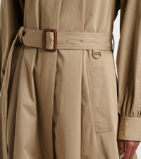Equally versatile and sophisticated, this long trench coat from Chloe is made from lightweight cotton gabardine with a high neckline and gathered cuffs. The style is complete with classic details, including shoulder tabs and a buckled belt. Product Details - Material: 100% cotton - Care instructions: dry clean - Made in Italy - Designer color name: Soften Brown - Item color: brown - Closure: concealed buttoned front - Pockets: slant pockets - Lining: 100% cotton - Attached belt - Item number: P01031126 Size & Fit - True to size - Shoulder pad inserts - Loose fit, comes with belt - Non-stretchy fabric - slit length 46,0cm-18" - The model seen in the picture is 178cm-5'10" and wearing a size FR 36