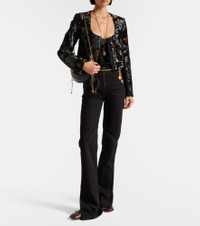 Renowned for its free-spirited aesthetic, Chloe's designs are characterized by romance with a Parisian flair. This cropped jacket is designed with charming all-over floral embroideries and finished with golden buttons at the front. Product Details - Material: 50% viscose, 33% polyester, 9% silk, 8% polyamide - Care instructions: dry clean - Made in Italy - Designer color name: Multicolor Black 1 - Item color: multicolor, black - Lining: 51% viscose, 49% cotton - Closure: toggle fastenings - Item number: P01090107 Size & Fit - True to size - Shoulder pad inserts - Straight fit - Non-stretchy fabric - Cropped - The model seen in the picture is 178cm-5'10" and wearing a size FR 36