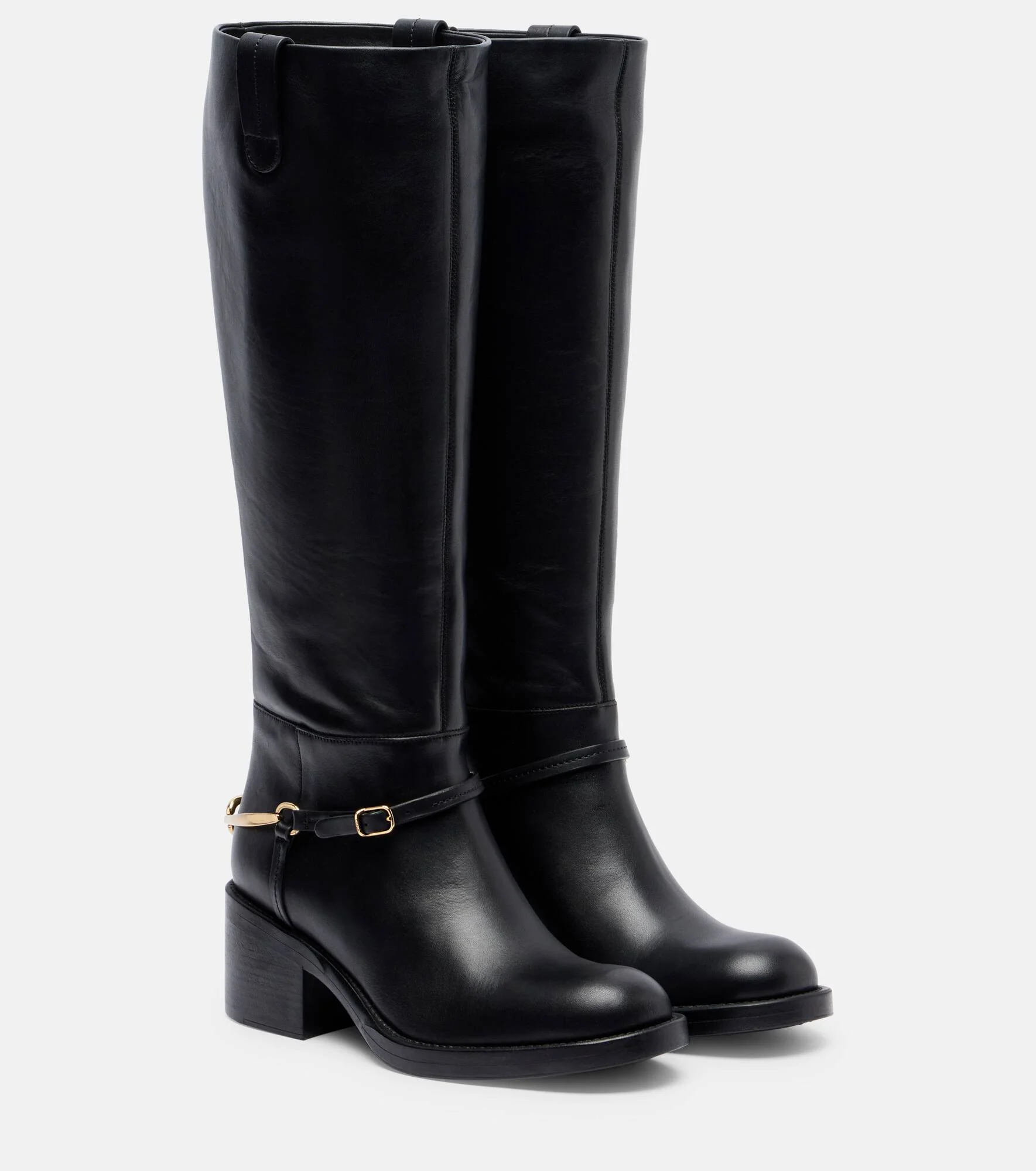 Renowned for its free-spirited aesthetic, Chloe's designs are characterized by romance with a Parisian flair. The Dakota knee-high boots are expertly crafted from leather with gold-toned, equestrian-inspired hardware. Product Details - Upper: calf leather - Lining: leather - Sole: leather insole, rubber sole - Color: black - Toe shape: round toe - Made in Italy - Includes: dust bag, shoe box - Designer color name: Black - Item color: black - Hardware color: gold - Closure: buckle-fastening ankle strap - Item number: P01133682 Size & Fit - True to size - Best fit for narrow feet - Narrow fit due to lining - European sizes - 6,5cm-2.5" heel - 40cm-15.5" shaft height (size EU 38) - 37cm-14.5" shaft width (size EU 38) - shaft width measured on largest part of boot