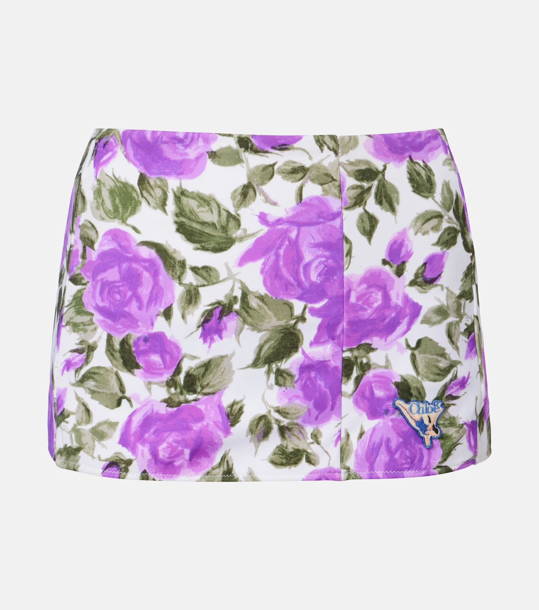 Chloe embodies a forward-thinking yet timeless aesthetic. This high-rise swim skort is designed with built-in briefs and features an all-over rose print. Product Details - Material: 80% polyamide, 20% elastane - Care instructions: machine wash at 30 degrees - Made in Italy - Color: purple - Designer color name: White - Purple 1 - Lining: 80% polyamide, 20% elastane - Item number: P01152847