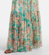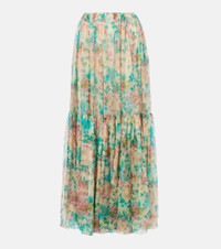 Ushering in elegance the warm season, this maxi skirt is crafted from flowy silk mousseline and adorned with a floral motif inspired by Chloe's heritage. The tiered silhouette is gathered at the waist and finished with a dangling metal hardware at the side. Product Details - Material: 100% silk - Care instructions: dry clean - Made in Madagascar - Designer color name: Seedpearl Beige - Item color: multicolor - Pockets: side slit pockets - Lining: 68% acetate, 32% silk - Closure: zipper fastening - Item number: P01031125 Size & Fit - True to size - Elasticated waist - Adjustable at the waist - Non-stretchy fabric - The model seen in the picture is 178cm-5'10" and wearing a size FR 36