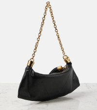 Product Details - Material: leather - Lining: suede - Made in Italy - Designer color name: Black - Internal details: card slot - Closure: zipped top - Hardware color: gold - Color of fastening: gold - Chain shoulder strap - Color of chain strap: gold - Includes: dust bag - Item number: P00997313 Size & Fit - Height 15cm-6" - Max. width 36cm-14" - Depth 2,5cm-1" - Chain length 54cm-21.5"