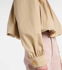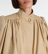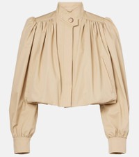 Embrace Chloe's elegant approach to design with this jacket. A chic layer for in-between seasons, it's cut from crisp cotton gabardine with a gathered, slightly cropped silhouette and an elegant high collar. Product Details - Material: 100% cotton - Care instructions: dry clean - Made in Slovakia - Designer color name: Smoky Beige - Item color: beige - Lining: 100% cotton - Closure: button-down - Pockets: side slit pockets - Contains non-textile parts of animal origin - Item number: P01031135 Size & Fit - True to size - Non-stretchy fabric - Cropped - The model seen in the picture is 178cm-5'10" and wearing a size FR 36