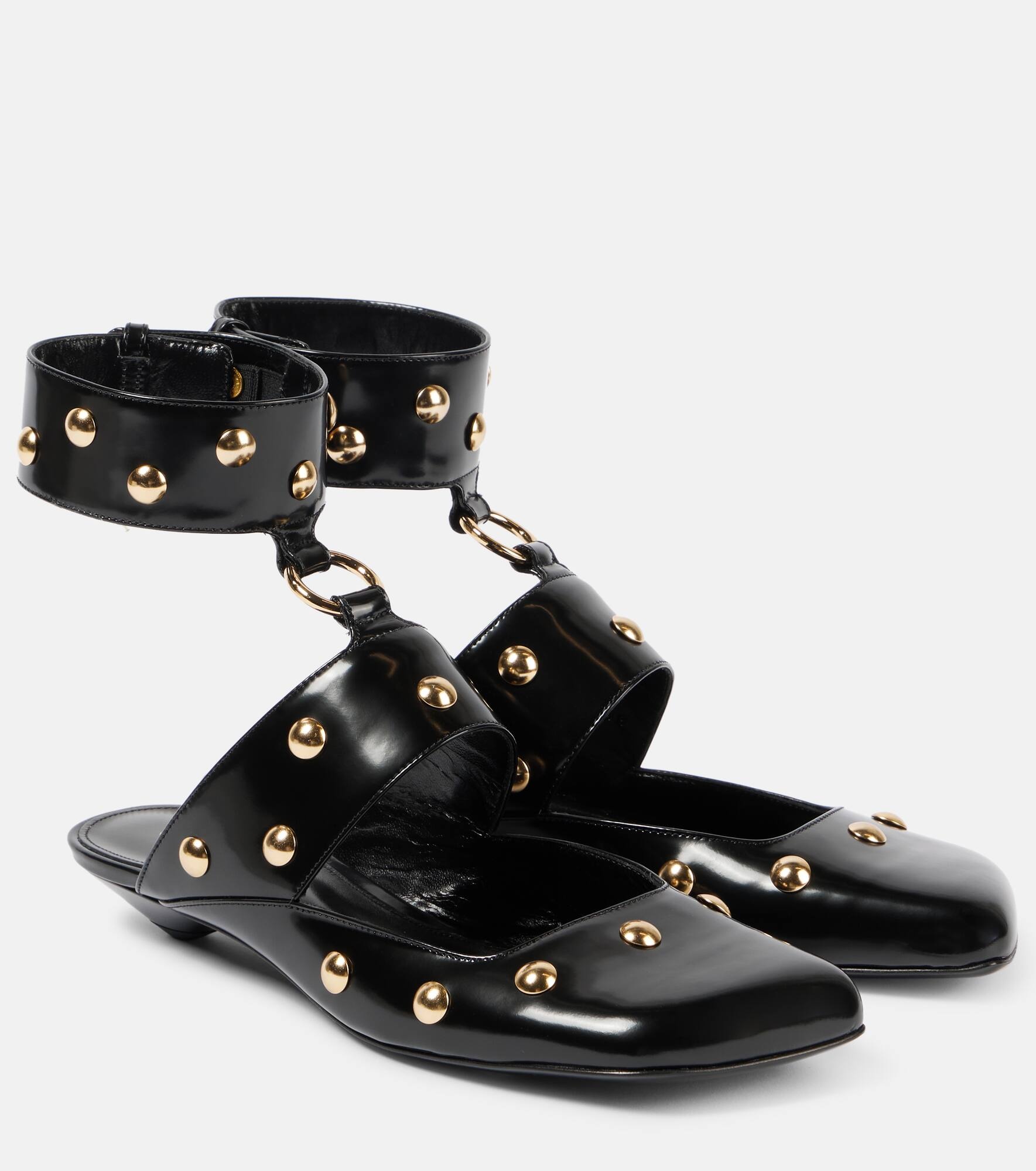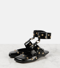 Jade studded leather flats