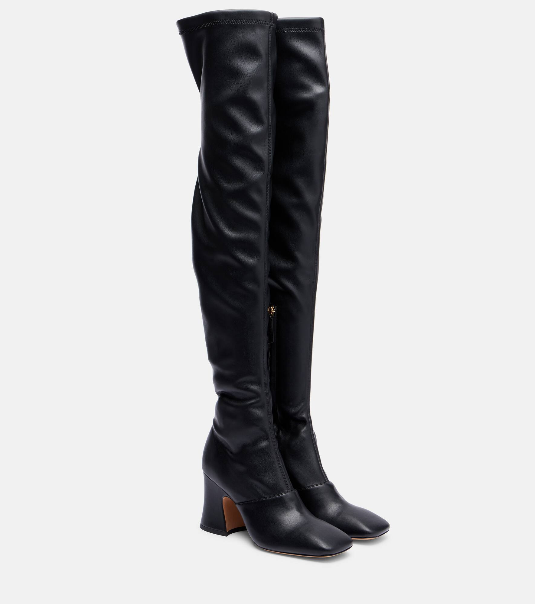 Expertly made from faux leather, the Janis over-the-knee boots will be a sophisticated addition to your collection. This pair is set on slightly flared 80mm heels are is complete with square toes. Product Details - Upper: faux leather - Lining: leather - Sole: leather insole and sole - Toe shape: square toe - Made in Italy - Includes: dust bag, shoe box - Designer color name: Black - Item color: black - Item number: P01041444 Size & Fit - True to size - Slightly narrow at the back - European sizes - 8cm-3" heel (size EU 38) - 63cm-25" shaft height (size EU 38) - 37cm-14.5" shaft width (size EU 38) - shaft width measured on largest part of boot