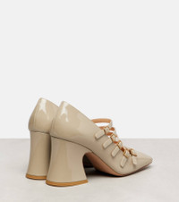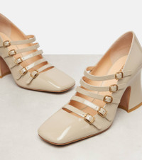 The Janis Mary Jane pumps from Chloe are set on 80 mm flared block heels. Shaped with a square toe, this pair is crafted from patent leather, and its design is complete with multiple buckle straps. Product Details - Upper: leather - Lining: leather - Sole: leather insole and sole - Toe shape: square toe - Made in Italy - Includes: dust bag, shoe box - Designer color name: City Grey - Item color: beige - Hardware color: gold - Closure: buckle fastening - Item number: P01041445 Size & Fit - True to size - European sizes - 8cm-3" heel (size EU 38)