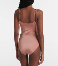 Product Details - Material: 80% polyamide, 20% elastane - Care instructions: hand wash - Made in Italy - Designer color name: Wilk Pink - Item color: pink - Lining: 84% polyamide, 16% elastane - Self-tie shoulder straps - Item number: P01031139 Size & Fit - True to size - Unpadded Top - Medium-cut leg - The model seen in the picture is 178cm-5'10", cup size B, and wearing a size FR 36