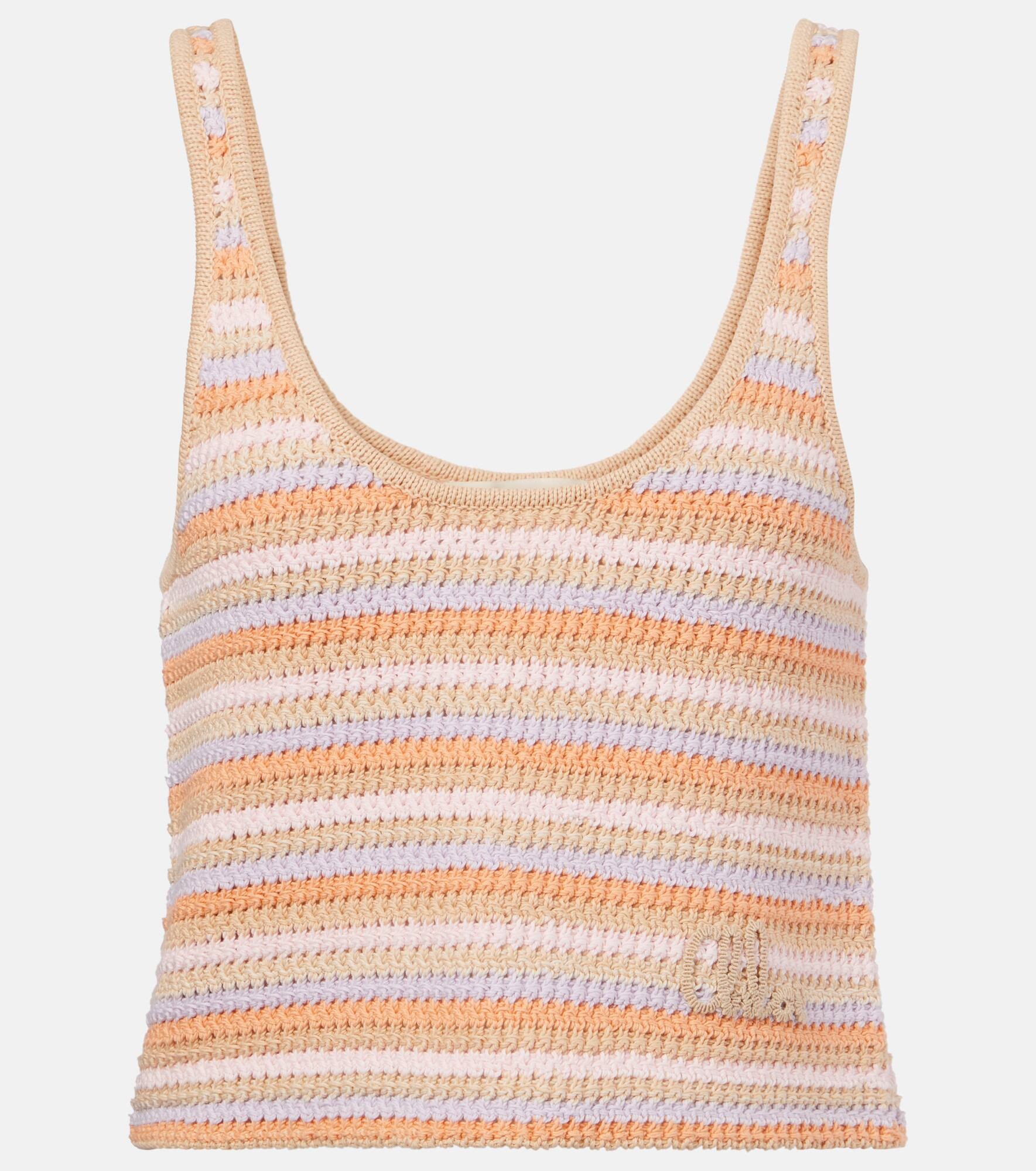 Create effortless warm-weather ensembles around pieces like this tank top from Chloe. Knitted from cotton in a stripe-like pattern, the style is complete with a deep, round neckline and logo detailing at the hem. Product Details - Material: 100% cotton - Care instructions: hand wash - Made in China - Item color: multicolor - Item number: P01049013 Size & Fit - True to size - Straight fit - Stretchy fabric - Slightly cropped - Height of model is 174cm-68.5" and wears a size XS