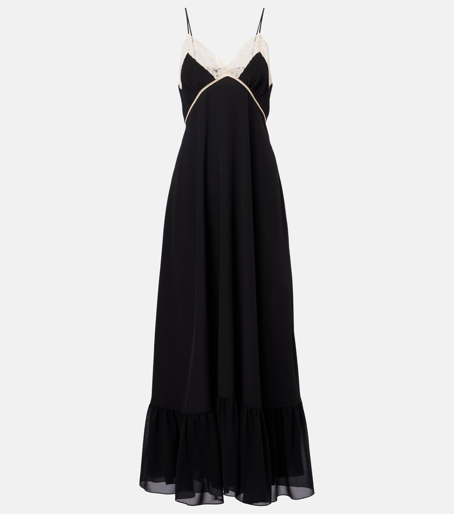 Lace-trimmed silk chiffon midi dress