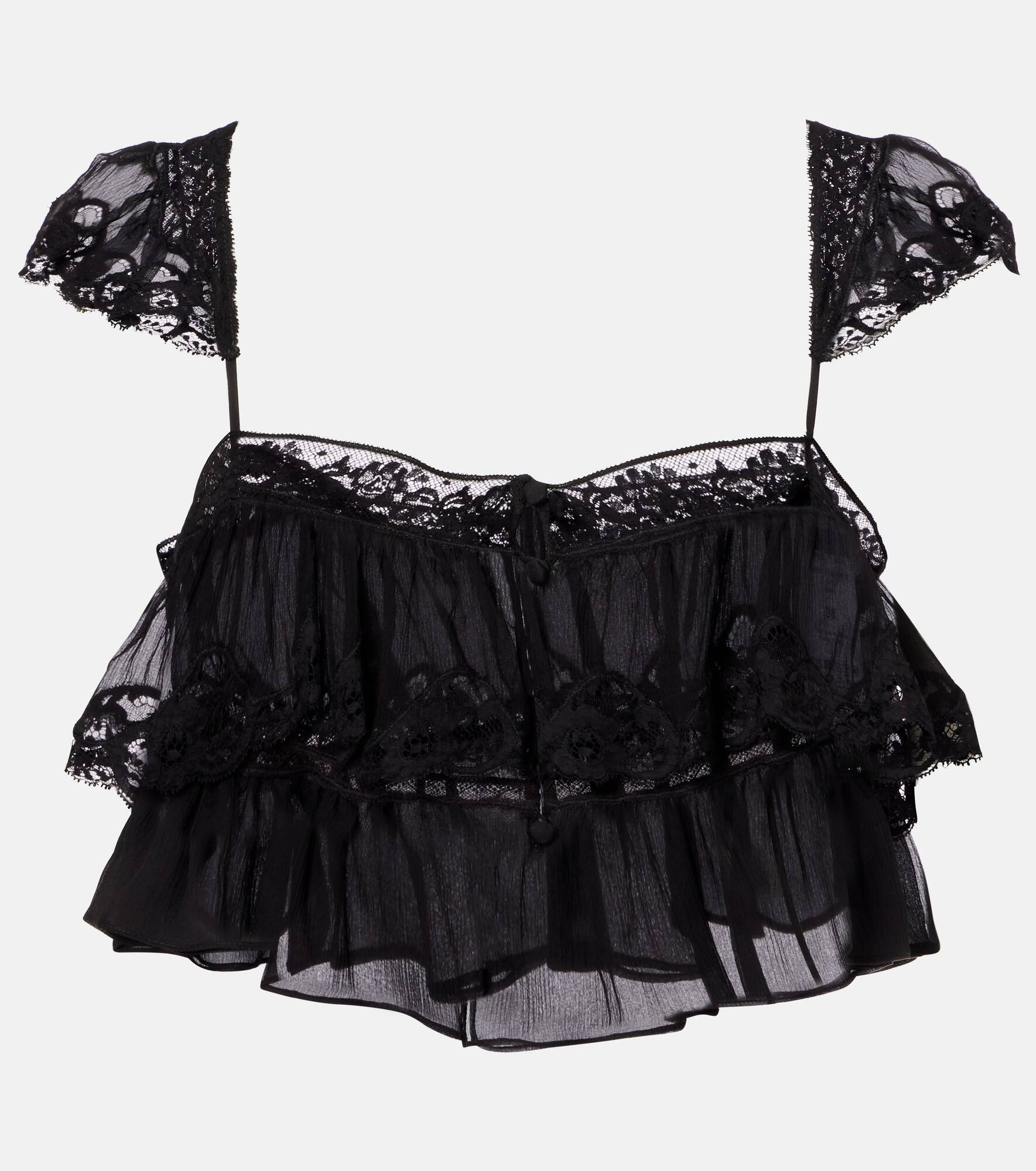 RUFFLED BRALETTE IN SILK MOUSSELINE & LACE