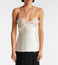 Chloe's designs are characterized by romance with a Parisian flair. This camisole is made in Italy from pure silk satin and features delicate floral lace panel inserts. Product Details - Material: 100% silk - Care instructions: dry clean - Made in Italy - Designer color name: Eden White - Item color: white - Material II: 56% cotton, 44% polyamide - Trim: 100% polyester - Item number: P01090109 Size & Fit - True to size - Low back - Designed for a loose fit - Non-stretchy fabric - Falls to the hip - The model seen in the picture is 178cm-5'10" and wearing a size FR 36