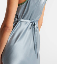 SLEEVELESS COLUMN DRESS IN WASHED SILK SATIN & LACE