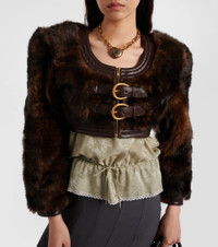 Renowned for its free-spirited aesthetic, Chloe's designs are characterized by romance with a Parisian flair. Crafted from shearling with leather trims, this jacket features padded shoulders and a cropped silhouette with front buckles. Product Details - Material: 100% shearling - Care instructions: specialist clean - Made in Italy - Designer color name: Faraway Brown - Item color: brown - Hardware color: brass - Trim: 100% lamb leather - Lining: 100% silk - Closure: buckle fastening, zipped front - Shoulder pads - Item number: P01089631 Size & Fit - True to size - Shoulder pad inserts - Cinched waist - Non-stretchy fabric - Cropped - The model seen in the picture is 178cm-5'10" and wearing a size FR 36