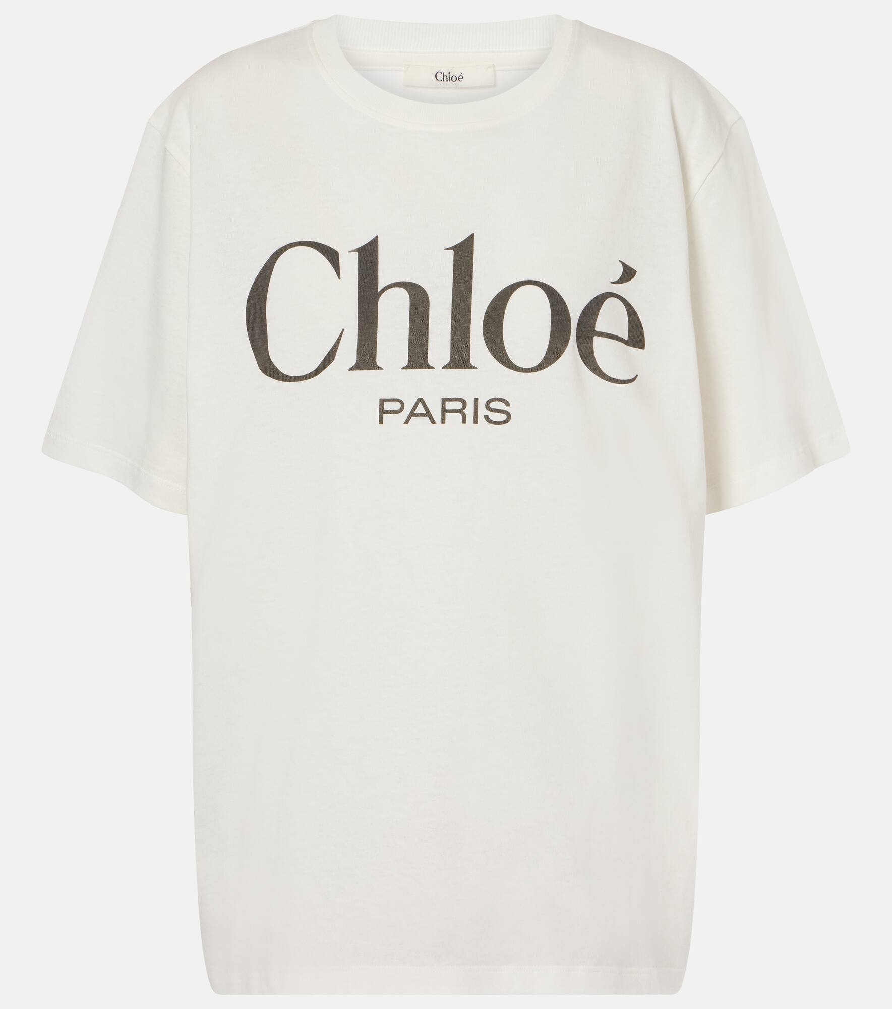 Chloe captures a carefree spirit with this relaxed crewneck T-shirt. Made from washed cotton jersey, it features a contrasting Chloe Paris logo print and a relaxed fit. Product Details - Material: 100% cotton - Care instructions: machine wash at 30 degrees - Made in Italy - Designer color name: White - Item number: P01012678