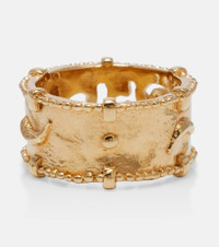 Chloe's designs are characterized by romance with a Parisian flair. This ring is a gold-toned piece with an antique design and features the brand's logo as its focal point. Product Details - Material: brass - Made in Italy - Item color: gold - Includes: dust bag, box - Item number: P01105798 Size & Fit - Width 1cm-0.5"